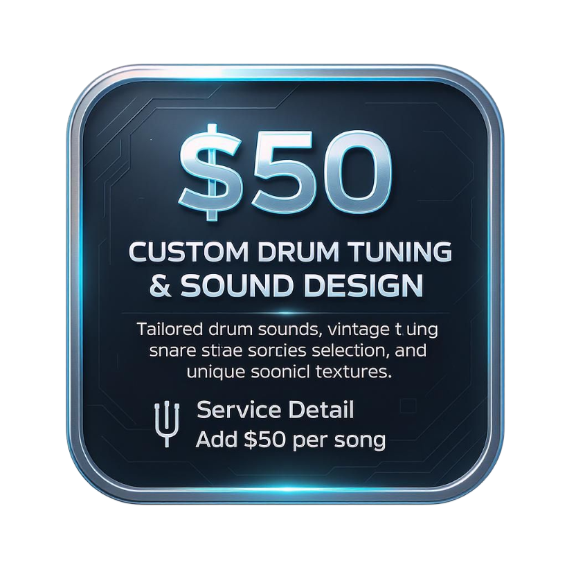 Add this service to any drum recording or production package to achieve a signature sound and professional polish on every track.